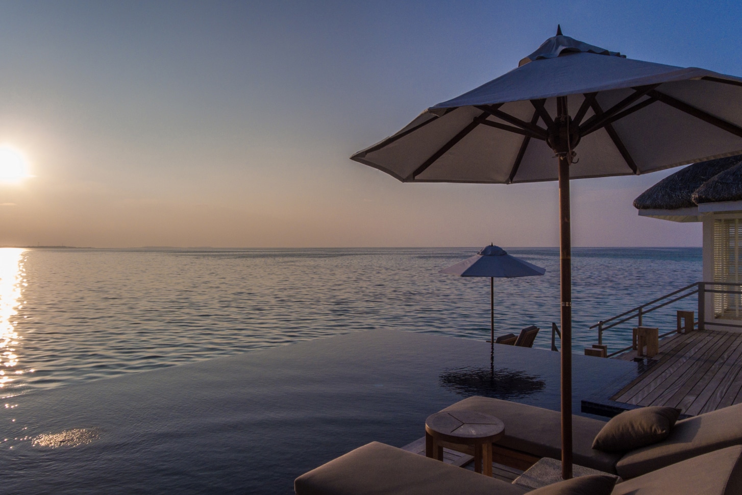 וילה קסומה על כלונסאות מעל המים אשר מציעה פרטיות מושלמת וירידה מהוילה לתוך המים. בוילה יש אמבטיה שמשקיפה לאוקיינוס האינסופי, חלק מהריצוף בוילה הינו מזכוכית שקופה כך שתוכלו לראות את חיות הים היישר מהמיטה. כמו כן תוכלו להנות ממרפסת המציעה מיטות שיזוף מפנקות ואף להשתזף על ערסל רשת מעל המים.
